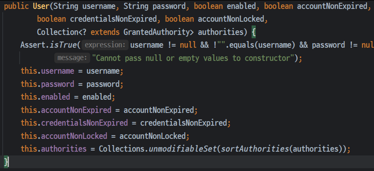 위의 사진은 스프링 시큐리티 클래스의 User클래스 내부 코드중 일부인데 이런식으로 생성자를 통해서도 가입이 가능한듯?