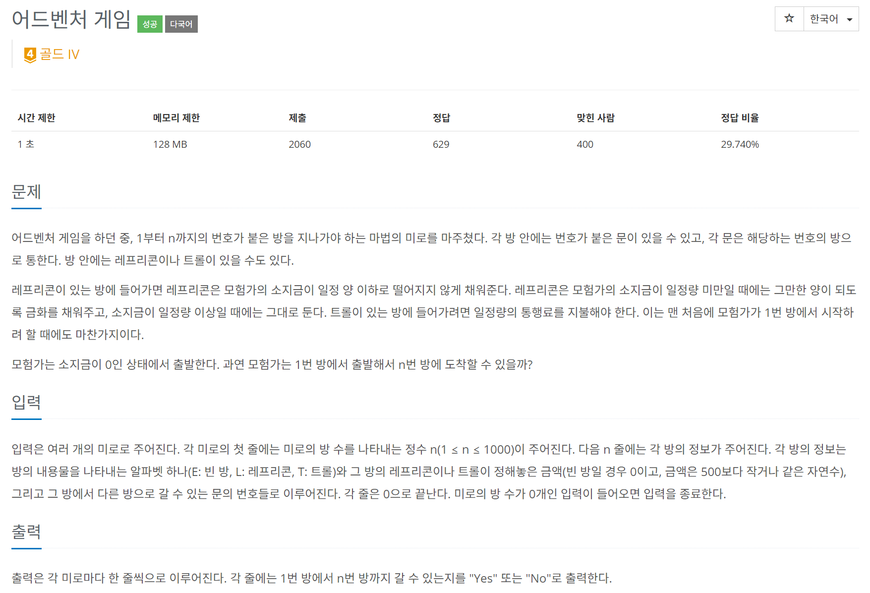 2310번: 어드벤처 게임