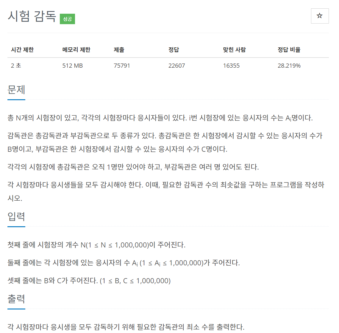 총 시험응시자 수를 나눠 몫과 나머지를 활용한다. / 입력조건을 잘 보고 자료형을 고민해야함
