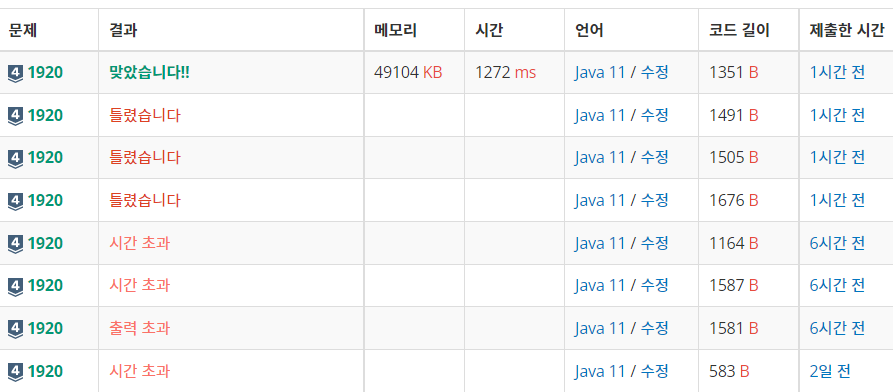 일단 그냥 구현했을 때 실패했음 원인은 시간초과